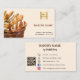 A soft beige, cream colored background. Decorated with a basket with bread and croissants. Personalize and add your business logo and the name, adress on front.