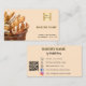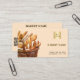 A soft peach colored background. Decorated with a basket with bread and croissants. Personalize and add your business logo and the name, adress on front.