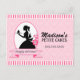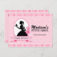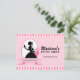 © 2012 Socialite Designs. Promote your bakery business with this elegant cupcake and silhouette woman design postcard. the background has a beautiful damask pattern and striped border. Woman inside banner and ribbon design can be moved and resized.