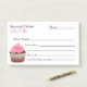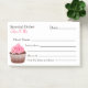 Large bakery themed Post it Note pad with graphics of a pink iced cupcake. Personalize the custom text to suit your business needs. Great for stone and mortar bakery or home bakers.