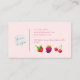 Cute and modern business card for a bakery featuring illustration of cakes, tarts, and fruits.