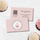 Modern Bakery Logo QR Social Media Icons Pink Business Card. Elevate your homemade bakery brand with this stylish and functional business card. Featuring a soft pink background, it allows you to create your own bakery’s logo, add a QR code for easy access to your website or menu, and customize social media icons to match your platforms. Perfect for small bakery owners, home-based bakers, and pastry chefs looking to leave a lasting impression. Personalize with your details to create a unique and professional look.