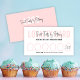Feminine bakery loyalty card with pink background and modern script font. This girly cupcake punch card includes 6 cupcake stamp slots or you can add more as you need to. Create modern cafe rewards cards with this trendy pastry chef stamp discount card template.