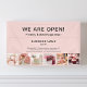 Welcome customers with this Bakery Minimal Pink "We Are Open" Banner—a stylish and inviting way to showcase your bakery! Featuring space for your slogan, contact details, and six customizable photos, this banner is perfect for highlighting your best treats. The soft pink design adds a warm and modern touch, making it ideal for storefronts, events, and promotions. Let customers know you’re open and ready to serve delicious baked goods!