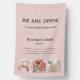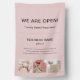 Welcome customers with this Bakery Minimal Pink "We Are Open" Flag, a stylish and inviting way to showcase your bakery! Featuring space for your slogan, contact details, and 3 customizable photos, this flag is perfect for highlighting your best treats. The soft pink design adds a warm and modern touch, making it ideal for storefronts, events, and promotions. Let customers know you’re open and ready to serve delicious baked goods!