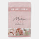Welcome customers with this Bakery "We Are Open" Flag, a stylish and inviting way to showcase your bakery! Personalize it with your initials, name, and tagline to create your own custom logo. Featuring space for 3 photos, this flag is perfect for highlighting your best treats. The soft pink design adds a warm and modern touch, making it ideal for storefronts, events, and promotions. Let customers know you’re open and ready to serve delicious baked goods!