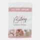 Welcome customers with this Bakery "We Are Open" Flag, a stylish and inviting way to showcase your bakery! Personalize it with your initials, name, and tagline to create your own custom logo. Featuring space for 3 photos, this flag is perfect for highlighting your best treats. The soft pink design adds a warm and modern touch, making it ideal for storefronts, events, and promotions. Let customers know you’re open and ready to serve delicious baked goods!