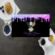 Elegant glitter drip, watercolor bakery pastry hand tools, and flowers on black background.