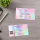 A pink, purple, mint green holographic background. Decorated with blush pink confetti and cupcakes. Personalize and add your business logo and a name on front