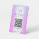 Make it easy for your customers to see what you have to offer at your bakery or café, contact free, with this elegant, sophisticated, simple, and modern custom QR code pedestal sign. A sparkly, purple pink blue ombre cake, script handwritten typography and glitter drips overlay a faux metallic purple blue ombre background.
