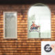Window Cling, Size: 4.00" x 4.00", Style: Automatic Opaque Design: White Underbase, Shape: Rectangle, Display: Back of Cling