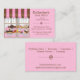 Awesome Pink and Brown Bakery Business Card with a store front full of fun desserts. Easily customize with your business details. delightfuldoodles.