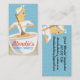 Pretty long-haired blonde woman baker, pastry chef or cook stirring with a giant wooden spoon and mixing bowl on business cards or homemade-with-love gift tags for home bakery, baked goods, or other food, baking, or cooking business and hobbies.