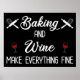 Baking And Wine Make Everything Fine. This funny quote baking accessory is a great gift for a man or woman who loves to bake in the kitchen and is a wine lover. Also perfect for a baker or a bakery worker. If you're a home baker, love the culinary arts, and love to prepare delicious bread, cookies, muffins, cakes or cupcakes in the oven, then this humorous design is for you.