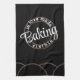 This stylish napkin features a modern design with the quote "Baking is Love Made Visible" in a sleek, circular font. The minimalist black background with a subtle texture adds a touch of sophistication.