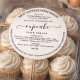 Modern Cupcake Cottage Law Label in a modern script design with elegant calligraphy font, space for your business name, address, cookie flavor, ingredients and allergens. Please be sure to edit all text to suit your needs and be compliant with your local food regulations. Each state and country has its own specific rules, the placeholder text is a guide only. Use these bakery stickers to create branded food license ingredients labels for your homemade cookies.
