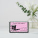 Business card for bakeries, bakers, cookies. Design features pink and black polka dotted measuring cup, rolling pink and wire whisk on pink with black border.