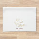 Custom-designed decorative kitchen hand towel for the holiday season featuring "baking spirits bright" gold calligraphy with personalized family name.