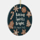 Fun and whimsical Christmas ornament featuring hand drawn illustration of holiday cookies. The text says "baking spirits bright."