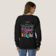 A black sweatshirt with a 'Baking Spirits Bright" retro holiday colorful design. This is a sweatshirt that can be personalized on the front a name/words and on the backside also > just delete that option if not using it.