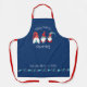 “Baking with my gnomies.” Here’s a wonderful way add to the fun of your holiday baking. Add extra sparkle to your holiday culinary adventures whenever you wear this adorable, whimsical, funny, simple, modern, custom name Christmas apron. Three cute, funny, whimsical Scandinavian designed gnomes in red, dusty blue and orange along with bold, white typography on a navy blue background help you get into the Christmas, Hanukkah & New Year spirit. Type in your name and change the copy if you wish. Choose from 3 sizes: 2 for adults and1 for children. Matching cards, stickers, pillows, wrapping paper, serving trays, home décor, and more are also available. A funky, trendy way for you to usher in the holidays!