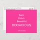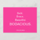 The "Bald & Bodacious" Hot Pink Breast Cancer Postcard by Illustrator & Cartoonist April McCallum. Caption: "Bald. Brave. Beautiful. Bodacious." and "You Go Girl!" Provocative & Sassy Cartoons and Expressions. "Raising Eyebrows & Making Impressions" for Breast Cancer Awareness.