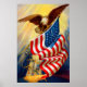 Bald Eagle 4th Of July poster Comes with a beautiful Flying Bald Eagle in the air holding onto a American flag with sun rays glowing on him.this is a beautiful photo on this poster
