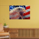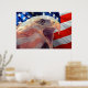 Bald Eagle 4th Of July poster Comes with a beautiful Bald Eagle head with mouth open and the American flag behind him .this is a beautiful photo on this poster