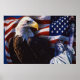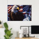 Bald Eagle 4th Of July poster Comes with a beautiful Bald Eagle sitting and looking at the Statue of Liberty and a American flag behind him .this is a beautiful photo on this poster