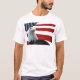 Patriotic shirt shows an American bald eagle against the backdrop of a red, white and blue American flag. Great for celebrating Independence Day on the 4th of July! Can be customized with your own text. Just look for the Customize It! button.