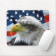 Patriotic mousepad with Beautiful close up photo of Bald Eagle in front of American Flag.