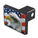 Patriotic Trailer Hitch Cover with beautiful close up photo of Bald Eagle in front of the American Flag.