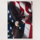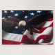 Bald Eagle 4th Of July puzzle Comes with a beautiful Bald Eagle flying in front and looking with a American flag behind him .this is a beautiful photo on this puzzle