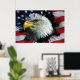 Bald Eagle 4th Of July poster Comes with a beautiful Bald Eagle head and looking with a American flag behind him .this is a beautiful photo on this poster