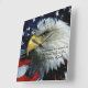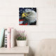 Bald Eagle head with a American flag behind him Square Wall Clock