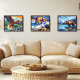 Together, these three panels form a cohesive celebration of wildlife in its natural mountain habitat, blending the energy of Cubism with the majesty of the outdoors.