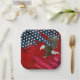 Bald Eagle in flight with an American abstract flag on a red leather background.