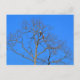 A pair of bald eagles perched in a tree with a vivid blue sky backround.