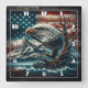 Bald Eagle Perched by Mountain and American Flag Square Wall Clock