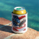 This can cooler has a design featuring a bald eagle and an American flag in the background. Using this can cooler would be a great way to show your patriotism.