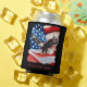 This can cooler has a design featuring a bald eagle and an American flag in the background. Using this can cooler would be a great way to show your patriotism. Add your own text and customize this can cooler to make it a fun gift for yourself or a friend or family member.
