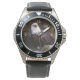 Watch, Stainless Steel Black Leather
