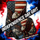 A detailed leather carving of a bald eagle perched on a branch, with the American flag and mountains in the background, capturing a sense of patriotism.