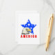 Bald Eagle in front of blue star with several white stars inside of it. America is written at bottom.