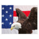A portrait of a male bald eagle with the american flag. This image was taken of a bald eagle that can't be released into the wild and is used for educational purposes. Photo taken by Debbie Quick of Debs Creative Images. If you like what you see, check out other photographs taken by Debbie at www.debscreativeimages.com