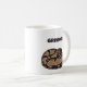 This coffee mug features a realistic style illustration of a coiled ball python snake in dark brown and tan. It's ready to be personalized with a name in dark brown lettering. The graphic and name appear on both sides of this mug. Makes a great gift for pet snake owners.