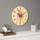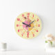 Fun blond girl dancing ballerina wall clock. Would be a great additional to your pretty ballerina's room. Pink and purple clock featuring a dancing ballerina. Background color can be changed to suit your room currently pale yellow. Original graphic ballet art and design by Sarah Trett for www.mylittleeden.com