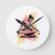 Design of a ballerina kneeling during her recital. Image created with yellow and pink clouds of color in the background, blending into the ballerina figure.