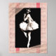 A vintage photograph of a cute ballerina posing in a dance with a musical notes background.