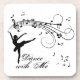 Simple black silhouette of a ballet dancer with fancy music bar and notes and Dance with Me